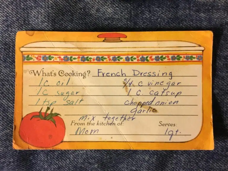 From the Ken Brookes Family Collection, Barbara’s French dressing: A zesty blend of oil, sugar, salt, catsup, vinegar, onion for a tangy kick. Elevate any salad with this family favorite!