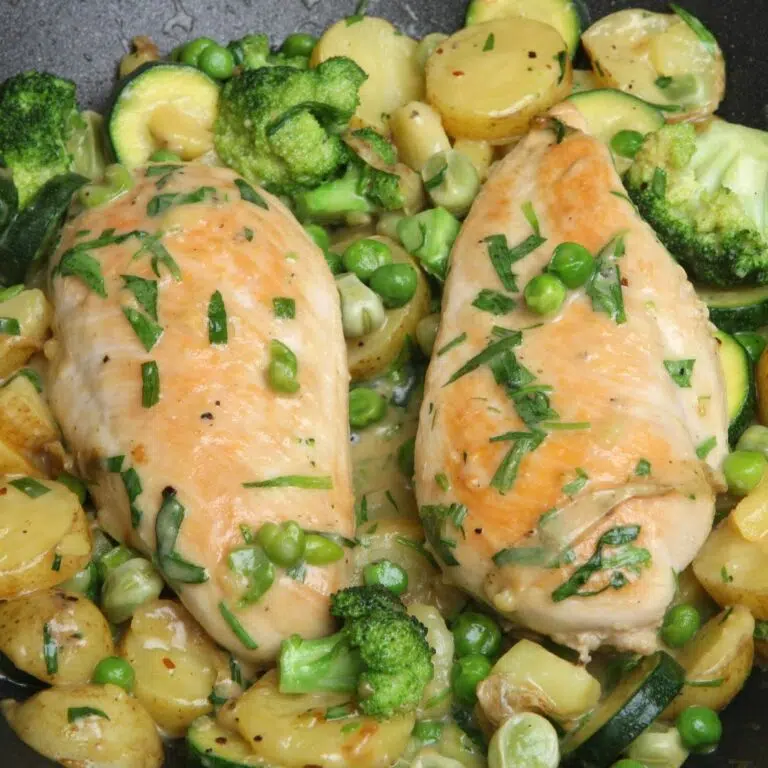 From the CFiander Family Collection: Savor the harmony of slow cooked Chicken with Tarragon and Leeks: golden thighs, tender leeks, and creamy tarragon sauce over baby potatoes.