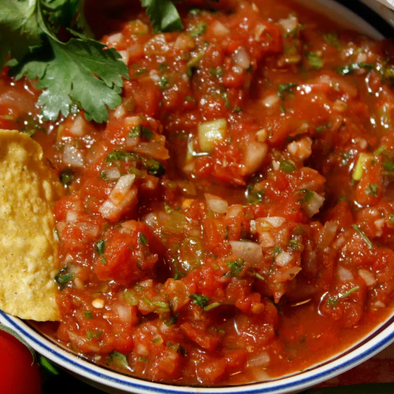 A smoky, tangy roasted salsa made with three types of tomatoes, jalapeรฑo, lime, and vibrant spices.