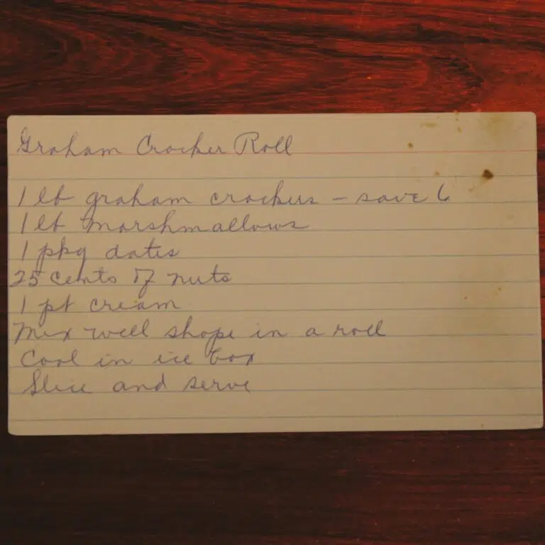 A simple, no bake graham cracker roll using marshmallows, dates, nuts and milk.