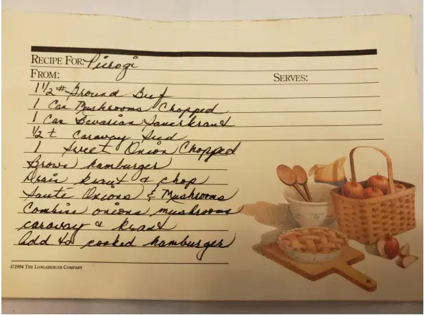 From the CFiander Family Collection: Grandpa’s Pierogi: Savory beef, sauerkraut, mushrooms, and caraway seed filling encased in crispy egg roll wrappers, a cherished family tradition.
