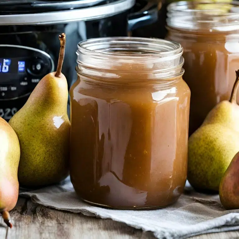CanPour the pear butter into sterilized jars, leaving some headspace at the top.