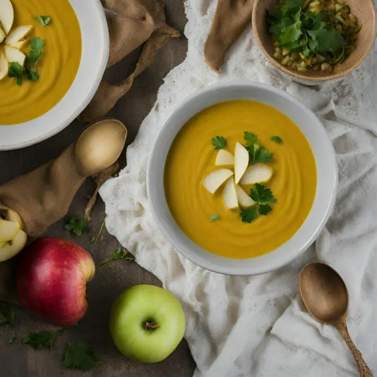 A delightful blend of roasted turnips, sweet apples, and aromatic curry spices for a cozy and flavorful soup experience.