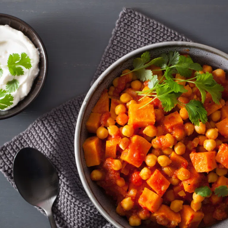 A flavorful, creamy curry with sweet potatoes, spinach, and chickpeas, perfect for a comforting meal!